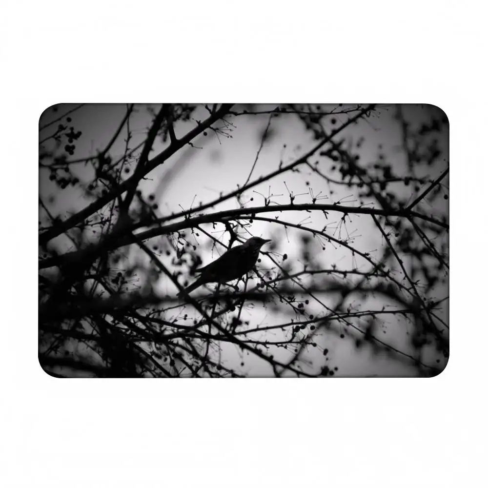 Black And White Mountain Tree Crow Floor Mat Home Bathroom Absorbent Mats Anti-Slip Mats Home Decor Supplies